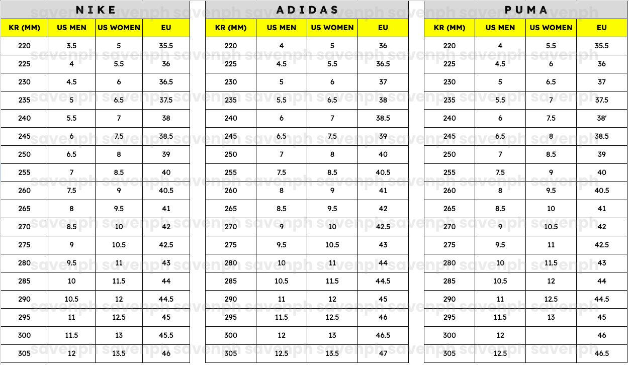 Please note that the sizes below are based on each brand’s official measurements. Since sizing may vary between brands and shoes, we recommend measuring your foot length (in millimeters or centimeters) for the most accurate fit. Kindly note that we do not accept returns or exchanges for wrong sizes.